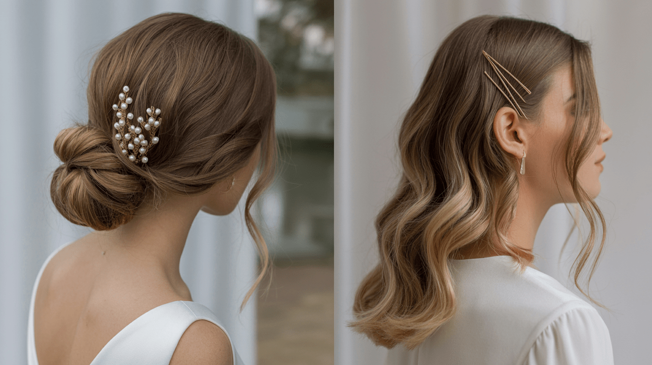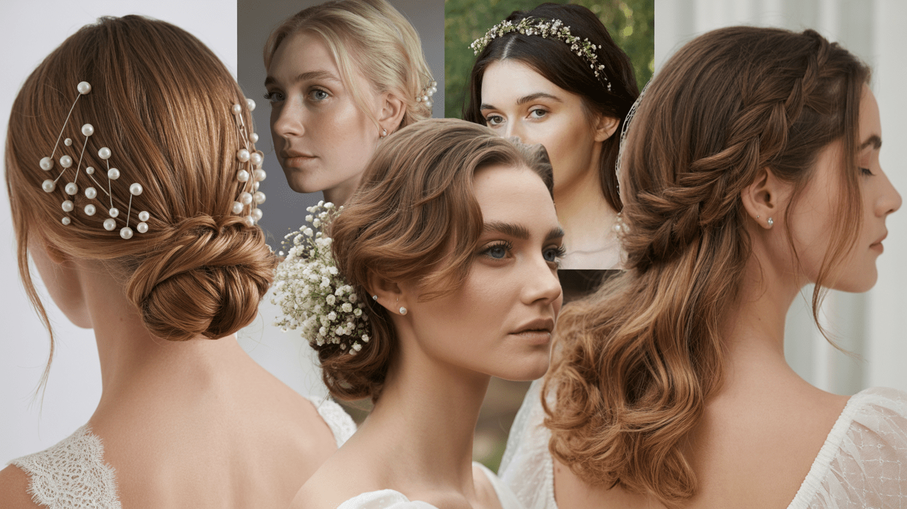 The top bridal hair styles for 2026 include textured low buns, pearl-embellished braids, soft face-framing waves, and modern sculptural updos. Clean, polished looks with a touch of romance are trending across all hair types.