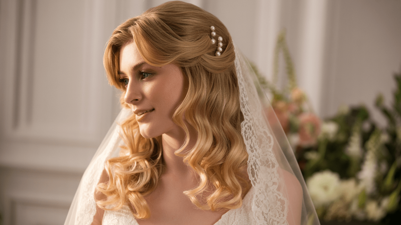Long hair and veils were made for each other. Cathedral veils cascade magnificently from a low bun or chignon — attach just above the bun for the most seamless look. Fingertip veils pair perfectly with half up styles or a loose chignon. Blusher veils work beautifully over loose waves or a braided crown. Always secure your veil comb with crossed bobby pins beneath it for all-day hold. For long hair, use a strong comb attachment and test before the wedding day.