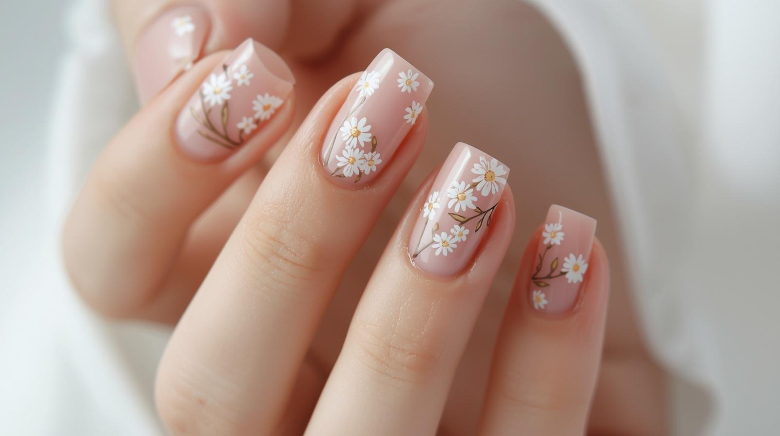 On short nails, one perfectly placed daisy on a single accent nail — everything else solid — is often more impactful than daisies on every finger. The restraint makes the single flower feel intentional, curated, and high-fashion rather than cute. This is the nail design idea for the person who always gets asked “where did you get your nails done?” despite doing them at home in fifteen minutes. See our simple spring nails guide for more minimalist approaches to short nail designs.