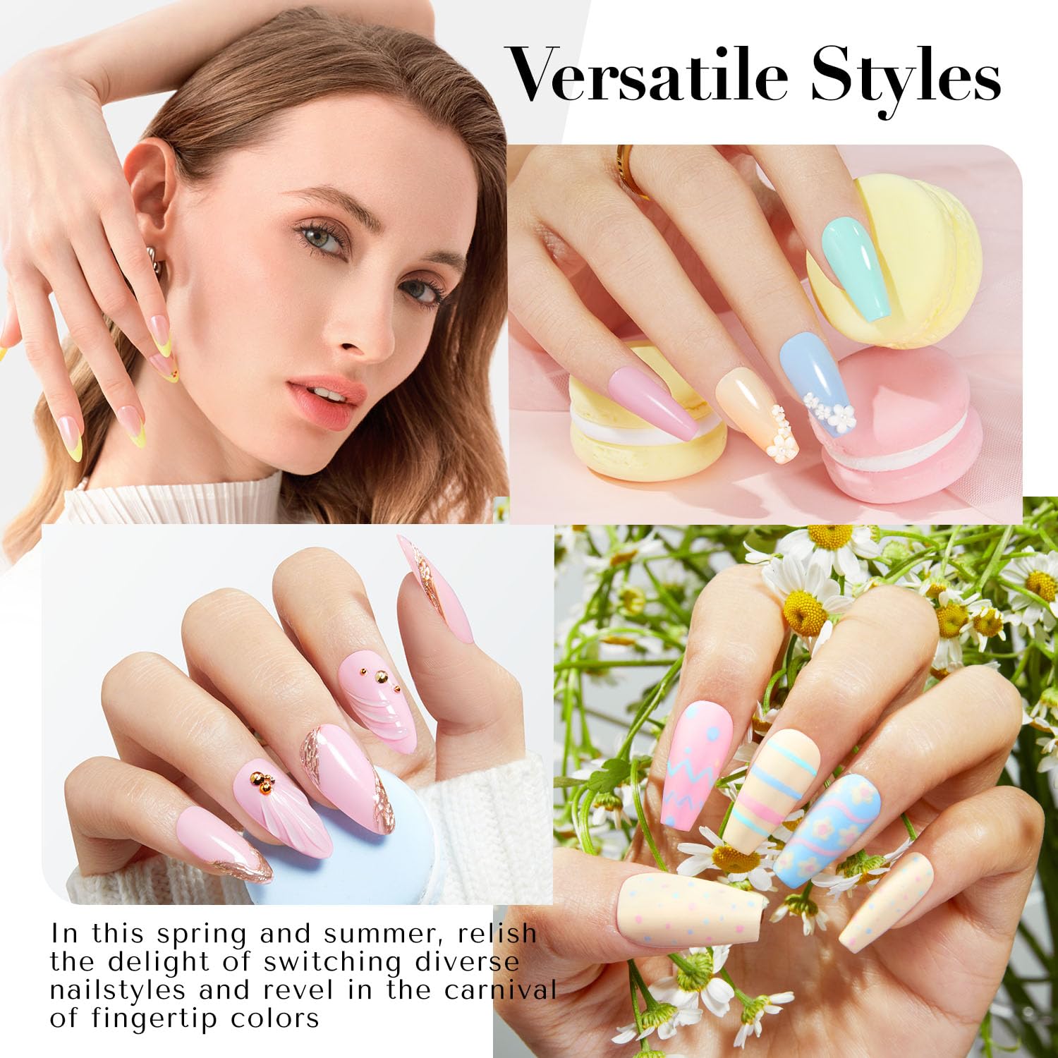 Why we love it: This affordable gel set comes with multiple pastel shades in one kit, including lavender, mint, blush, and soft yellow — essentially everything you need for every look on this list. The gel formula is self-leveling, chip-proof, and lasts up to three weeks with proper prep and a UV lamp.