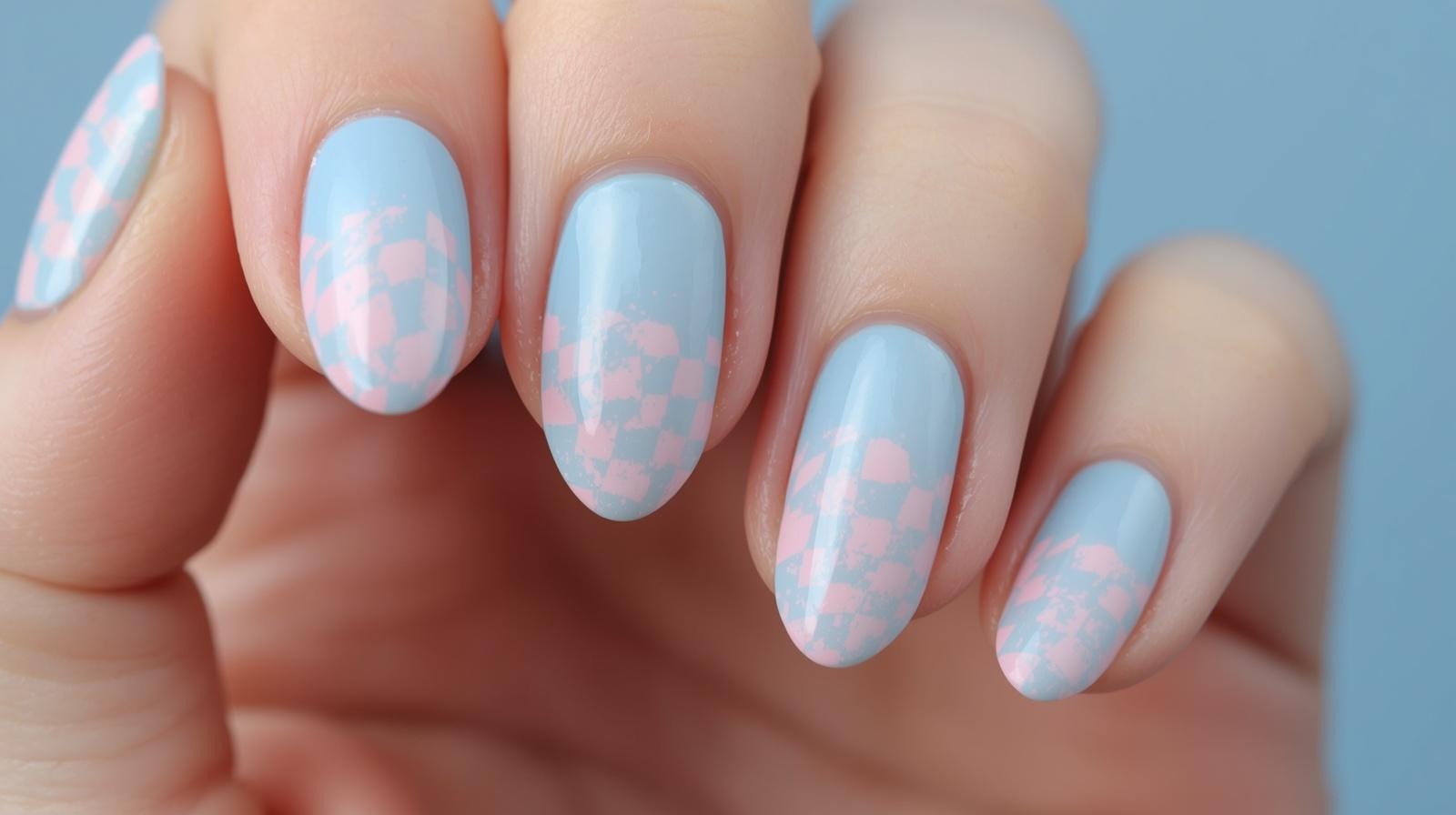 The checkerboard trend isn’t going anywhere — and in pastel blue and pink, it transforms into the softest, most spring-appropriate version of itself. This design alternates between powder blue and blush pink squares across each nail, creating a pattern that’s playful yet still undeniably feminine. A total crowd-pleaser and super shareable.