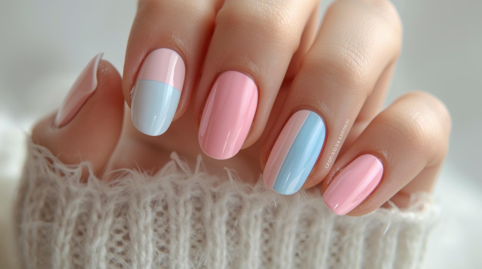 Split nails — where each nail is painted half one color and half another — are taking over nail inspo feeds this spring. Using cotton candy pink and powder blue side by side creates a playful, pastel-meets-street-style vibe. It’s fun, bold (in a soft way), and totally binge-worthy on your feed.