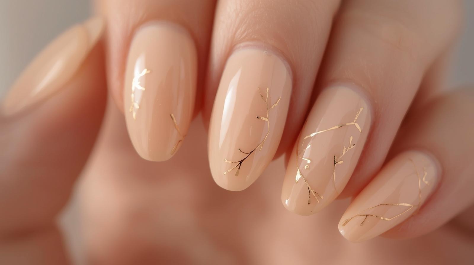 Soft peach polish gets a luxurious upgrade with gold foil accents pressed onto one or two feature nails. The warm pastel base and the metallic foil together feel elevated and fashion-forward — like something straight off a runway look. Great for special events, date nights, or any time you want your nails to do the talking.
