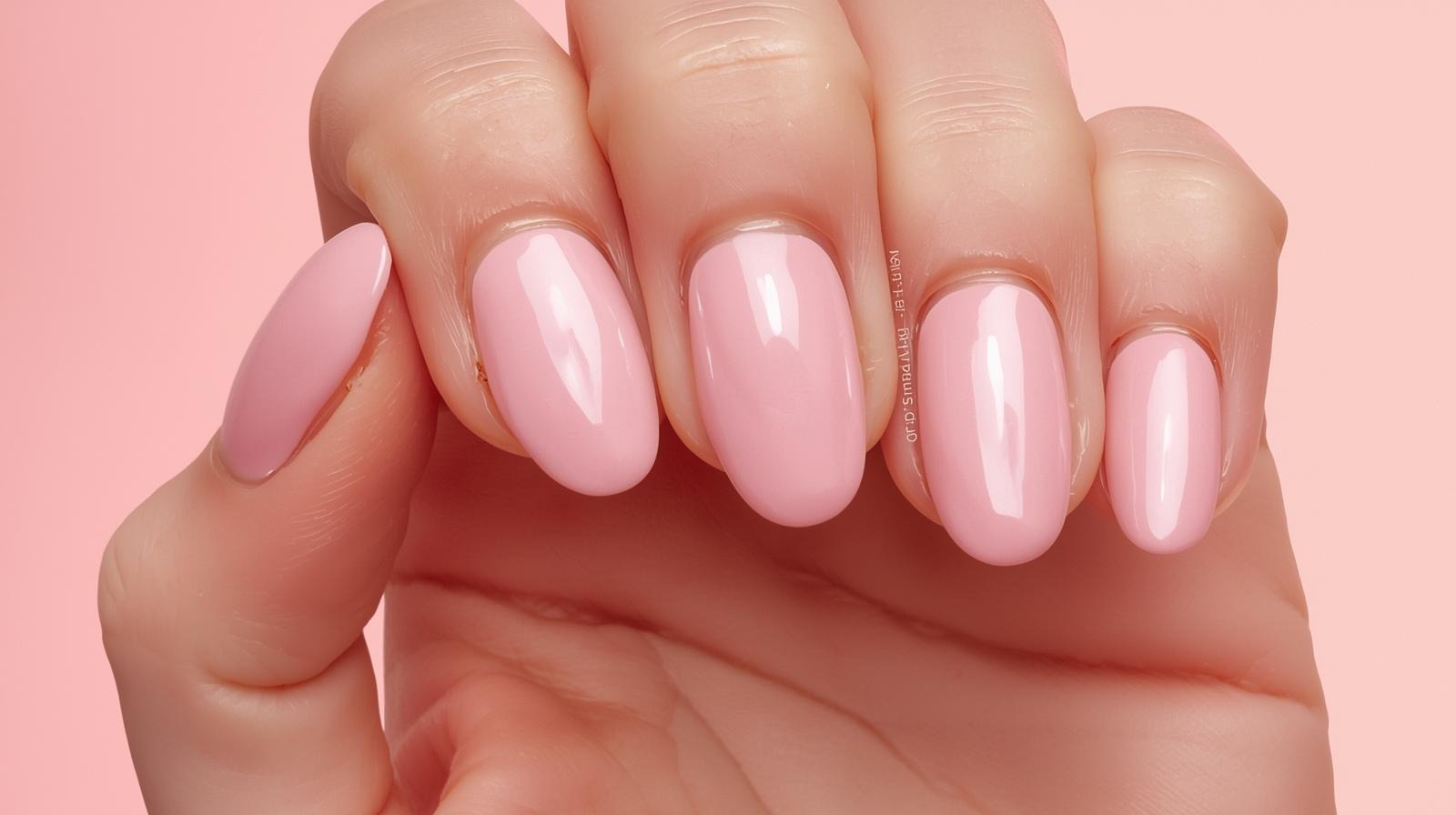 • Step 1: Apply a gel base coat, cure under a UV lamp, then apply two coats of sheer blush gel polish, curing between each.