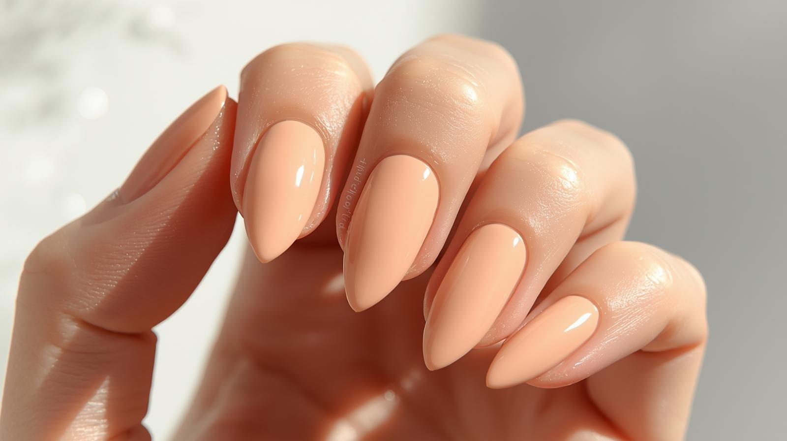• Step 2: Apply two coats of a warm peach cream polish for full, even coverage.